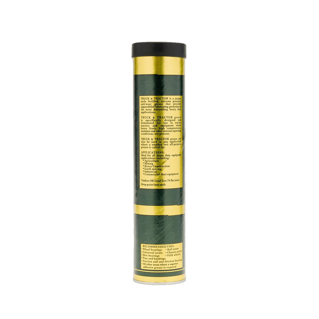 Truck & Tractor is a versatile grease designed for extreme pressure and anti-wear purposes, specifically crafted for heavy-duty construction, mining, farming, and industrial equipment. It is ideal for applications in hot, wet, or heavily loaded conditions, particularly where operating temperatures exceed 350°F. The formulation includes the finest high viscosity index base stocks, blended with an inorganic thickener, allowing effective lubrication of bearings even in temperatures as high as 600°F. Additionally, it contains high-quality additives such as moly and Teflon for enhanced performance and protection.