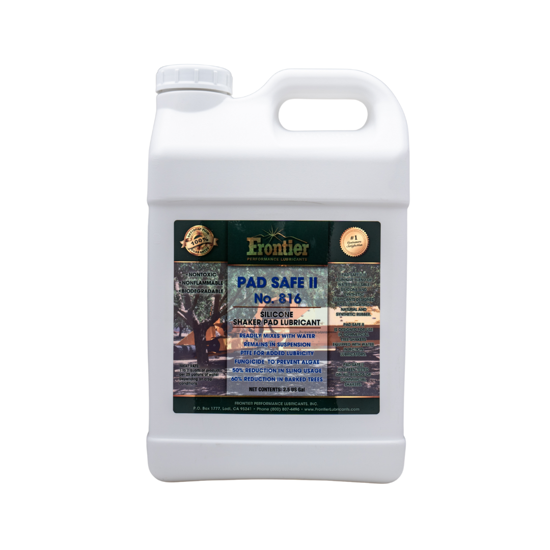 Pad Safe II is a unique blend of water emulsible silicone and synthetic lubricants designed for lubricating natural and synthetic rubber. Pad Safe II is designed for use in commercial tree shakers equipped with water injection lubricators. Pad Safe will readily mix in the water storage tank and will remain in suspension. Pad Safe II has been tested by both Custom Harvesters and private operators with a 50% reduction in sling usage and 60% to 80% reduction in barked trees.